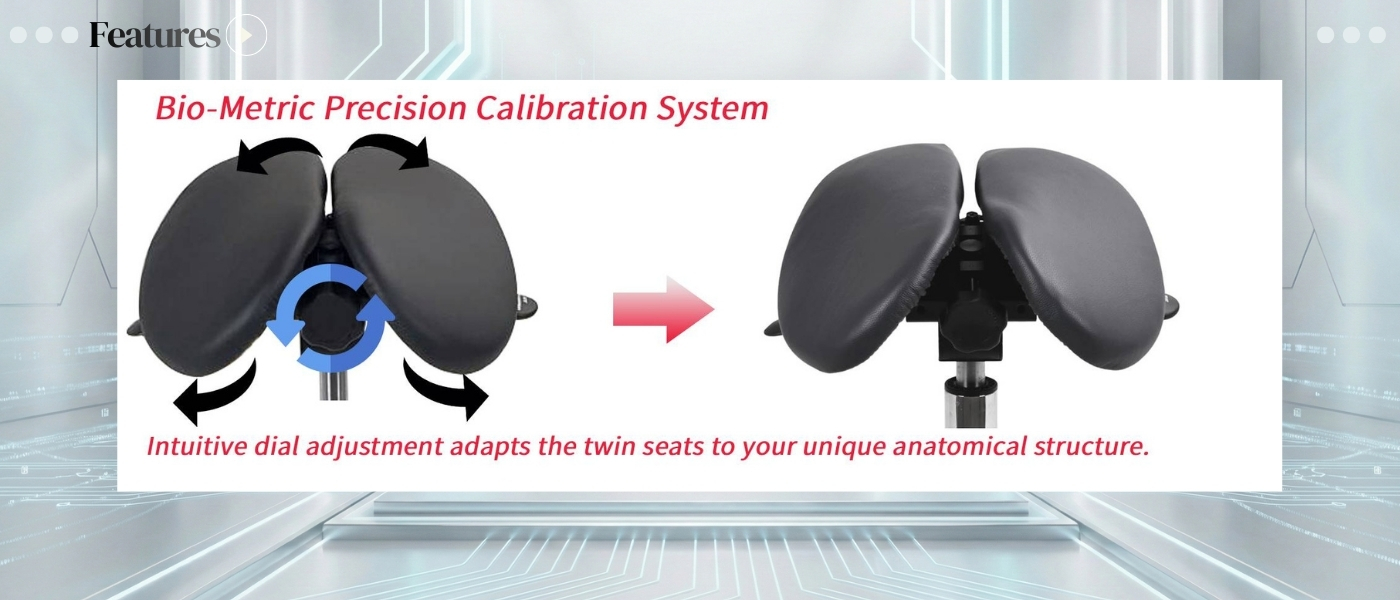 Exclusive International Patent Technology. Innovation you can trust. Our unique seat frame design has acquired exclusive patents in both the EU and USA. Unlike standard mechanisms, our Patented Central Calibration Knob allows for the simultaneous, millimeter-precise width adjustment of the split-seat cushions. This advanced system offers significantly smoother and more convenient adjustment than traditional models, ensuring a perfect physiological fit for every user.