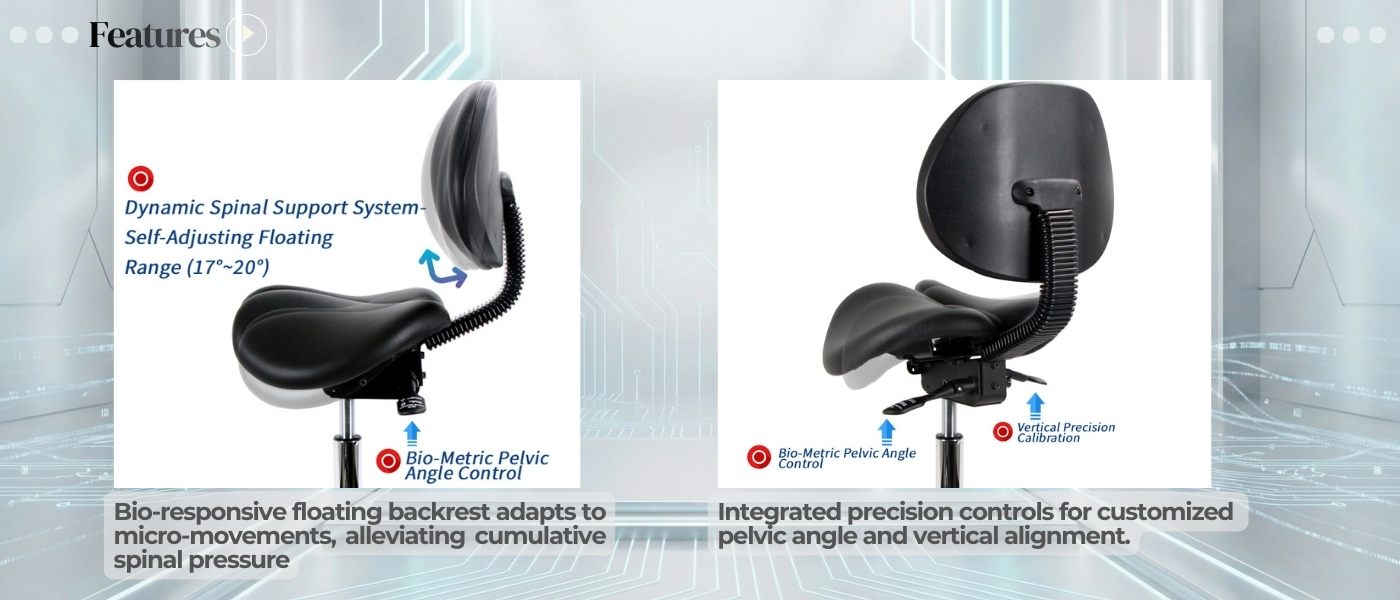 Integrated Dynamic Backrest. Simplify your workflow with our Self-Adjusting Floating Backrest. Unlike complex manual systems, this intelligent module (17°-20° range) automatically tracks your spine’s natural movement, providing continuous "zero-latency" lumbar support. The simplified Dual-Function Mechanism allows for intuitive seat height and posture control, ensuring you maintain peak physiological condition with minimal adjustment required.